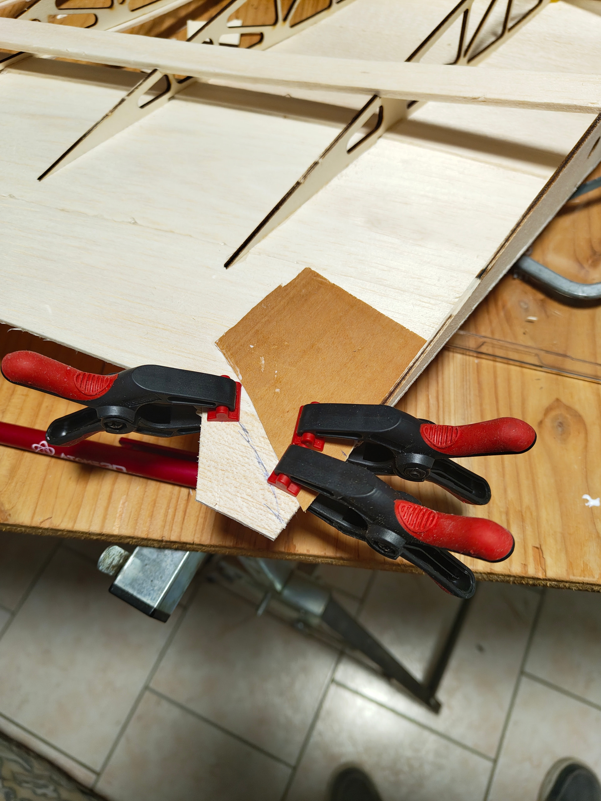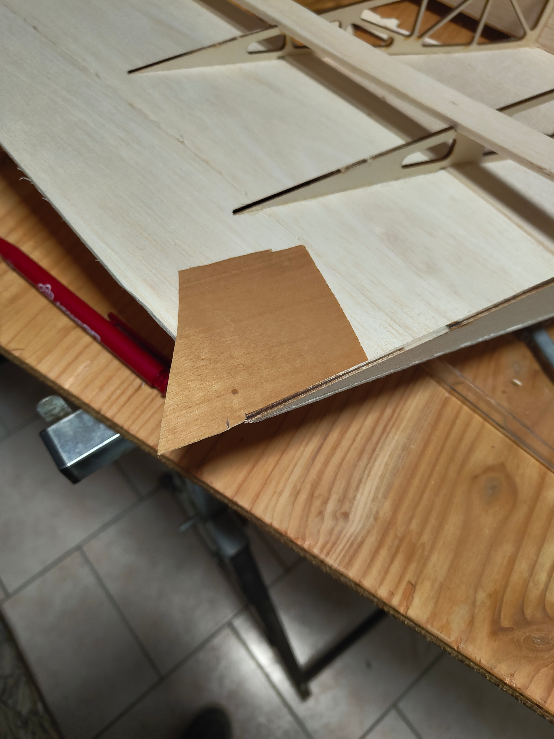 un petit morceau de contreplaqué dans le triangle de l’aile qui risque d’être fragile.