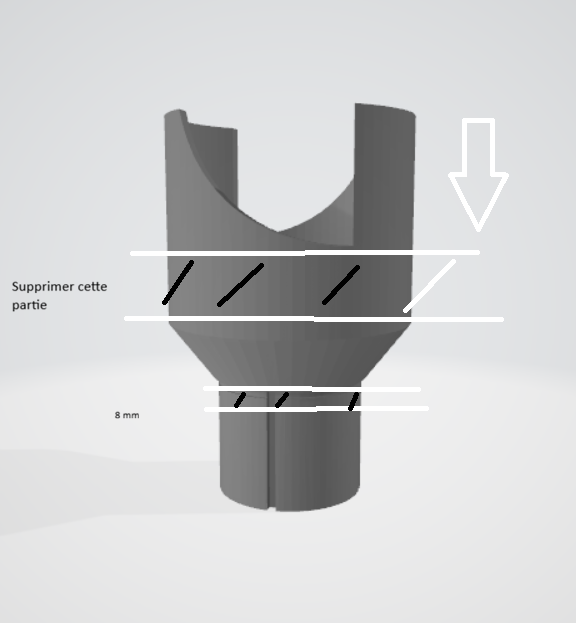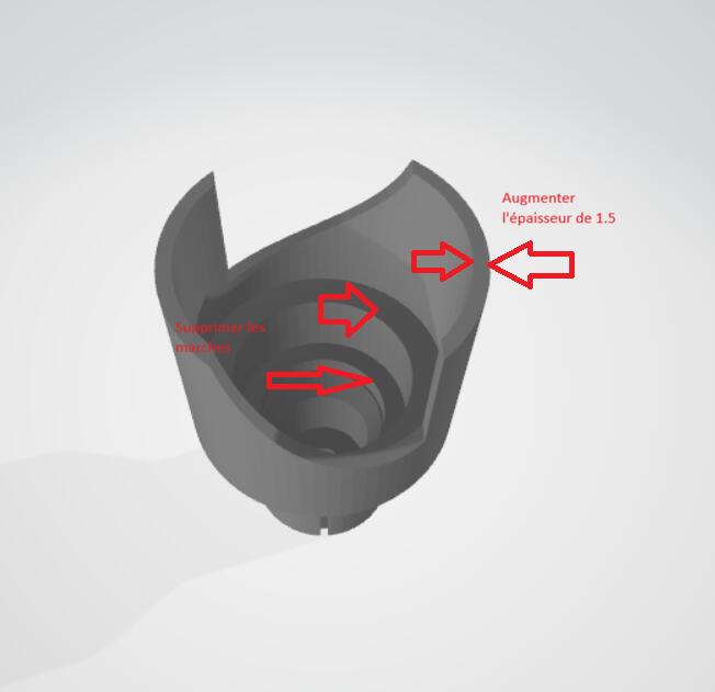J’aimerais donc enlever les escaliers dedans et faire un truc lisse qui ne fait pas d’amorces de déchirement et qui soit un peu plus épais sur les “dents” en les agrandissant vers l’intérieur de 1.5 fois et réduire la hauteur a deux endroits, en bas de 8 mm et en haut à raz des encoches j’ai fait deux dessins.