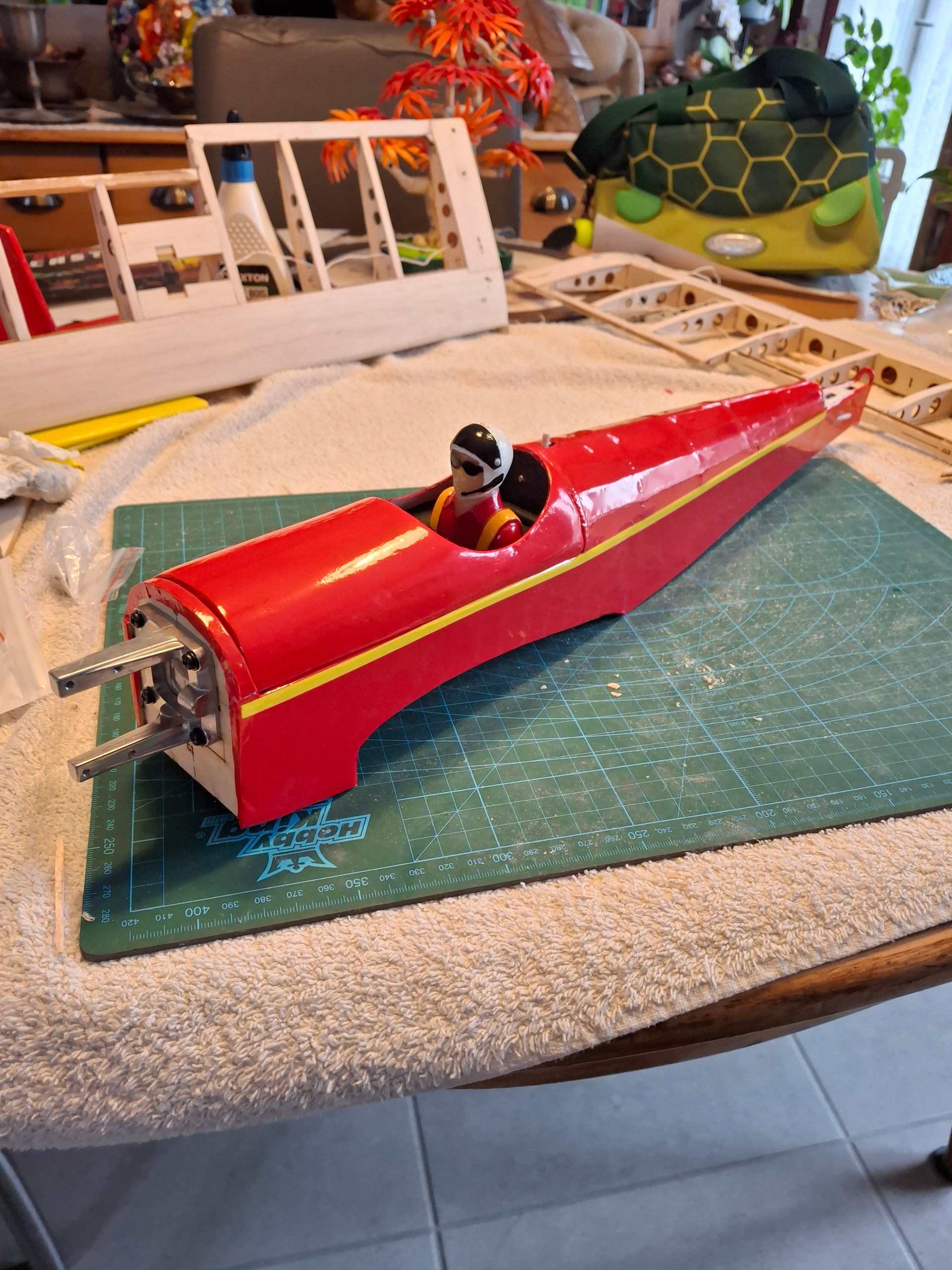 J’avance par petites touches; coffrage, entoilage. Prochaine étape, ponçage masticage ponçage ailes et fuselage