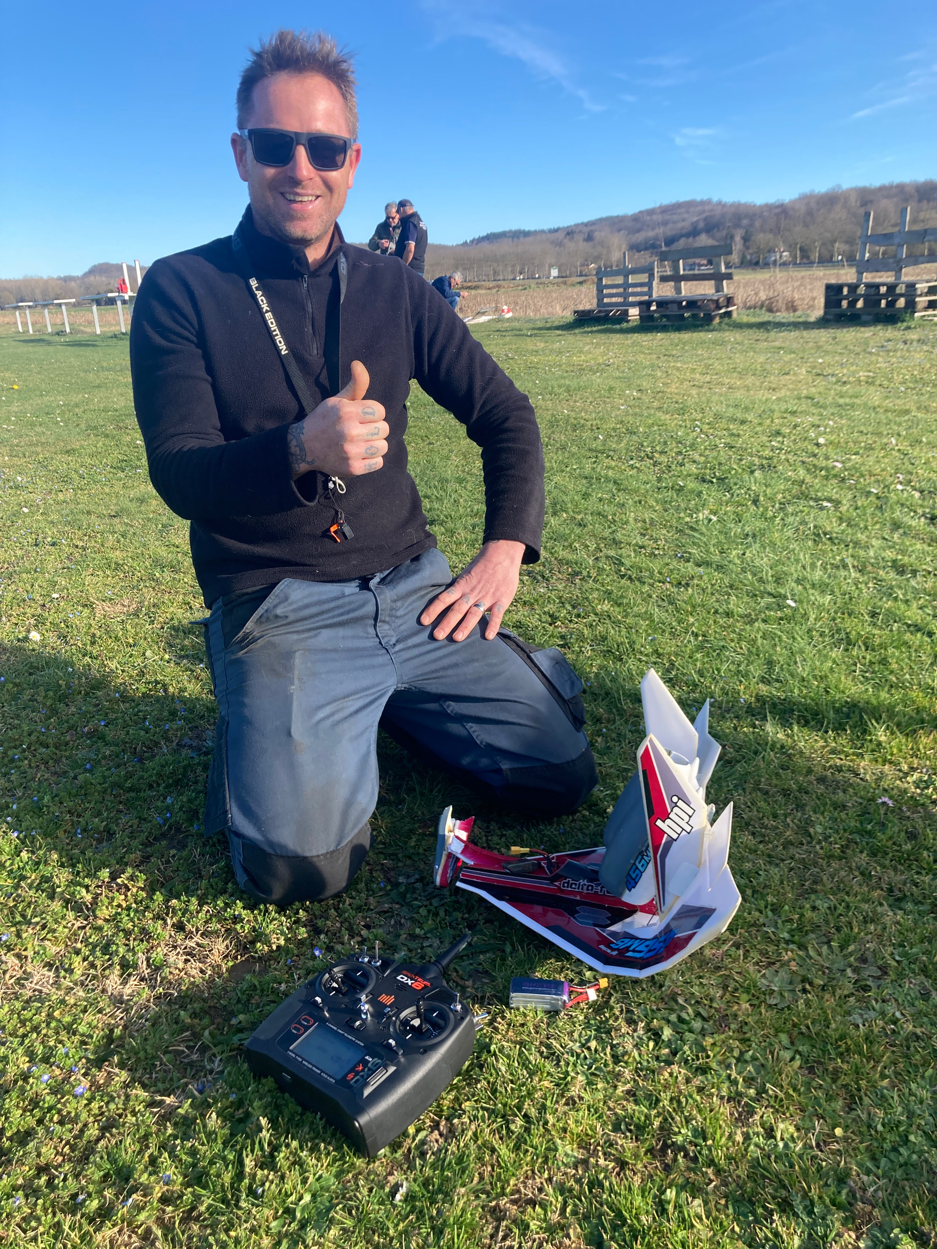 Jordan de son coté, essayera sa fun-jet 3000 W qui nous gratifiera d’une pointe à 255 km/h, vitesse GPS, Jordan ayant un peu modéré la vitesse afin de poser et vérifier que tout va bien, c’était un maiden aussi. Bien lui en a pris, un ailerons semble ne pas supporter les vols à cette vitesse et devra être renforcé.