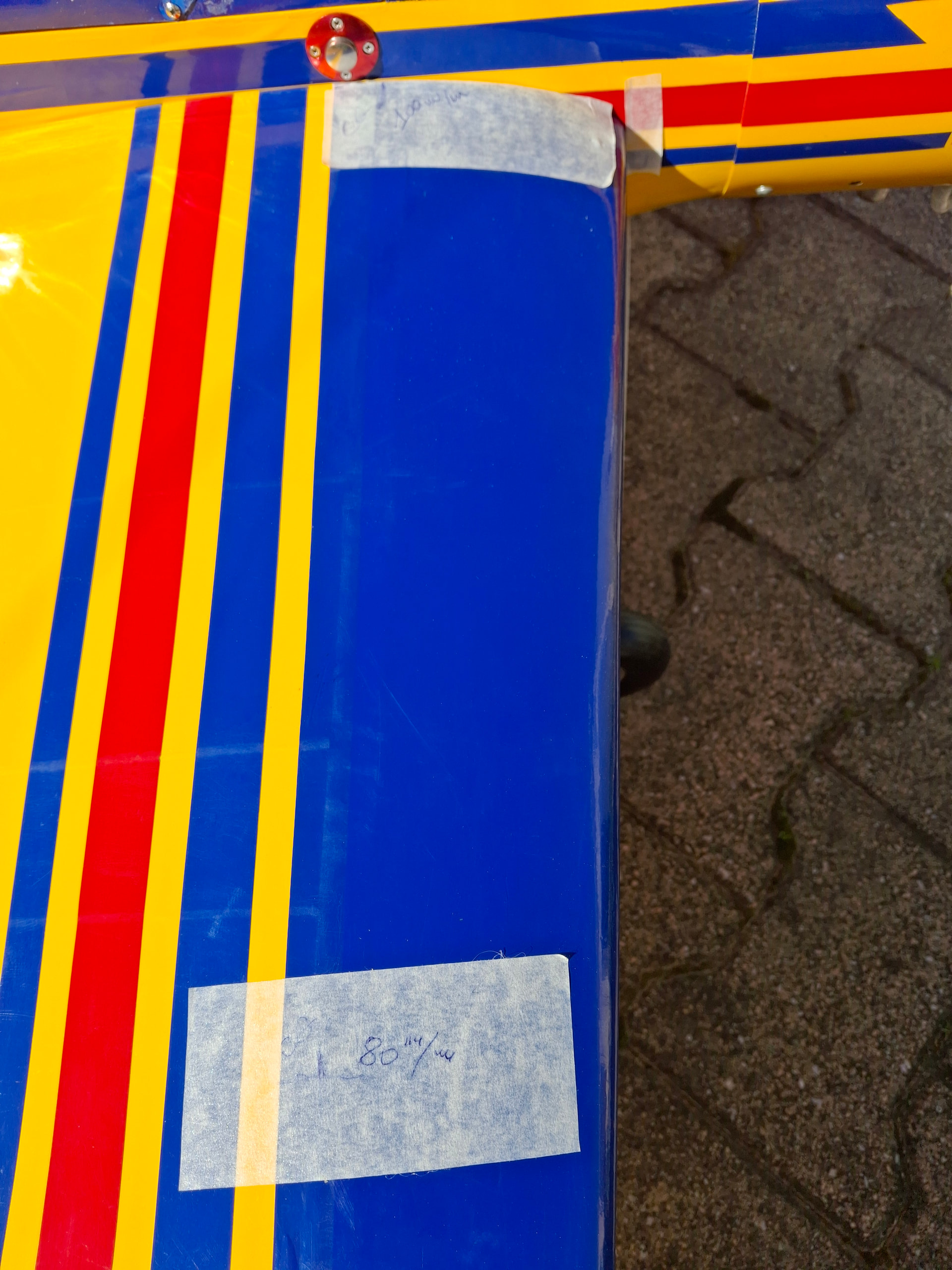 Petit secret personnel, que je partage : Quand je n’ai pas le centrage, je centre à la clef d’aile et souvent, c’est assez proche de la réalité. Ensuite, j’affine avec le test du piqué.