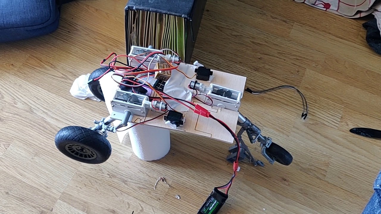 Une petite recherche sur le net m’a permis de trouver des trains parfait pour l’appareil, concu a la base pour une modele en mousse en 2m, c’est un train rentrant electrique, avec frein electro-magnétique et maquette en plus !