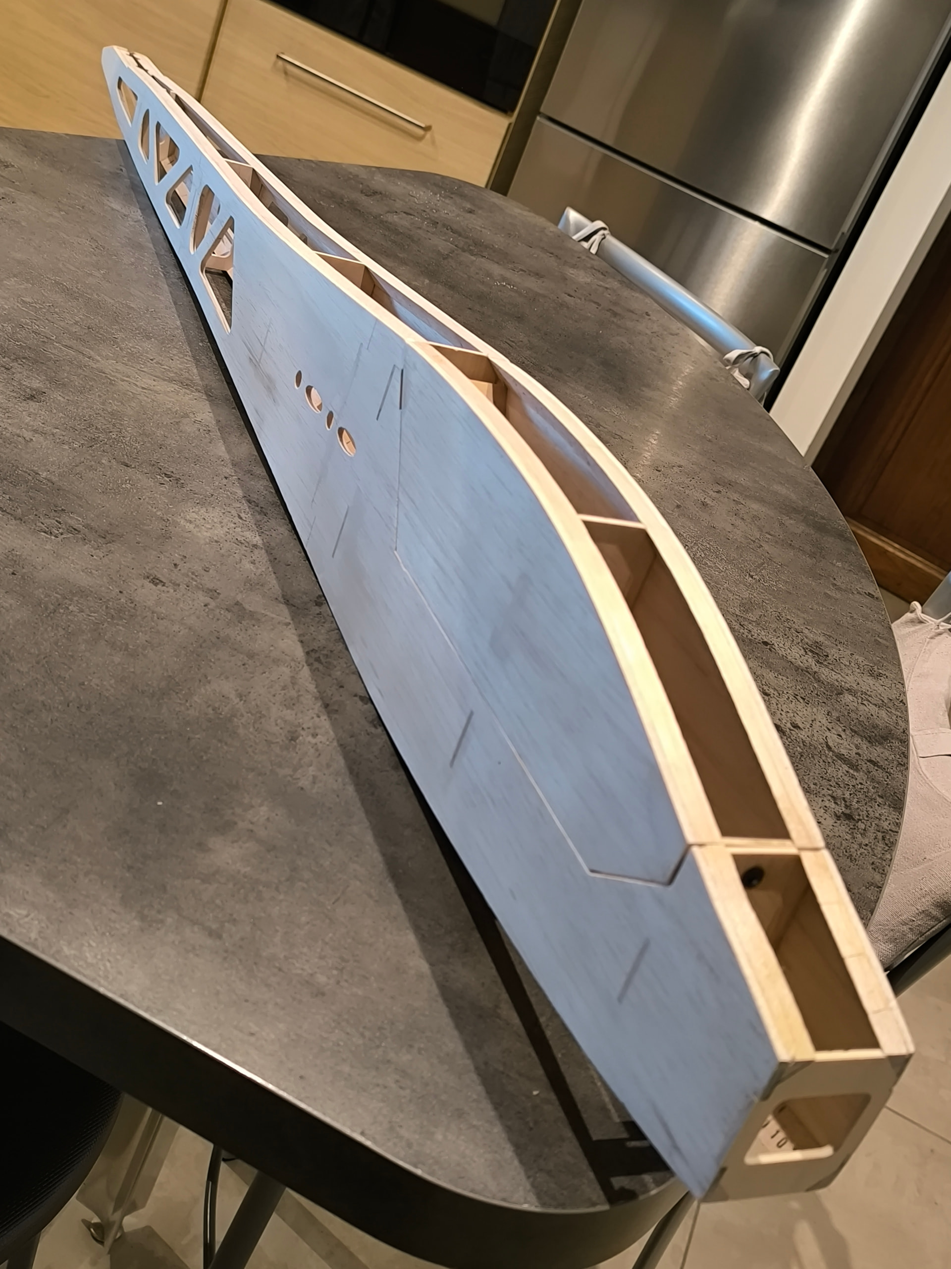Les 3 tronçons constitutifs du fuselage sont assemblés et collés et les équerres d’angle mises en place.