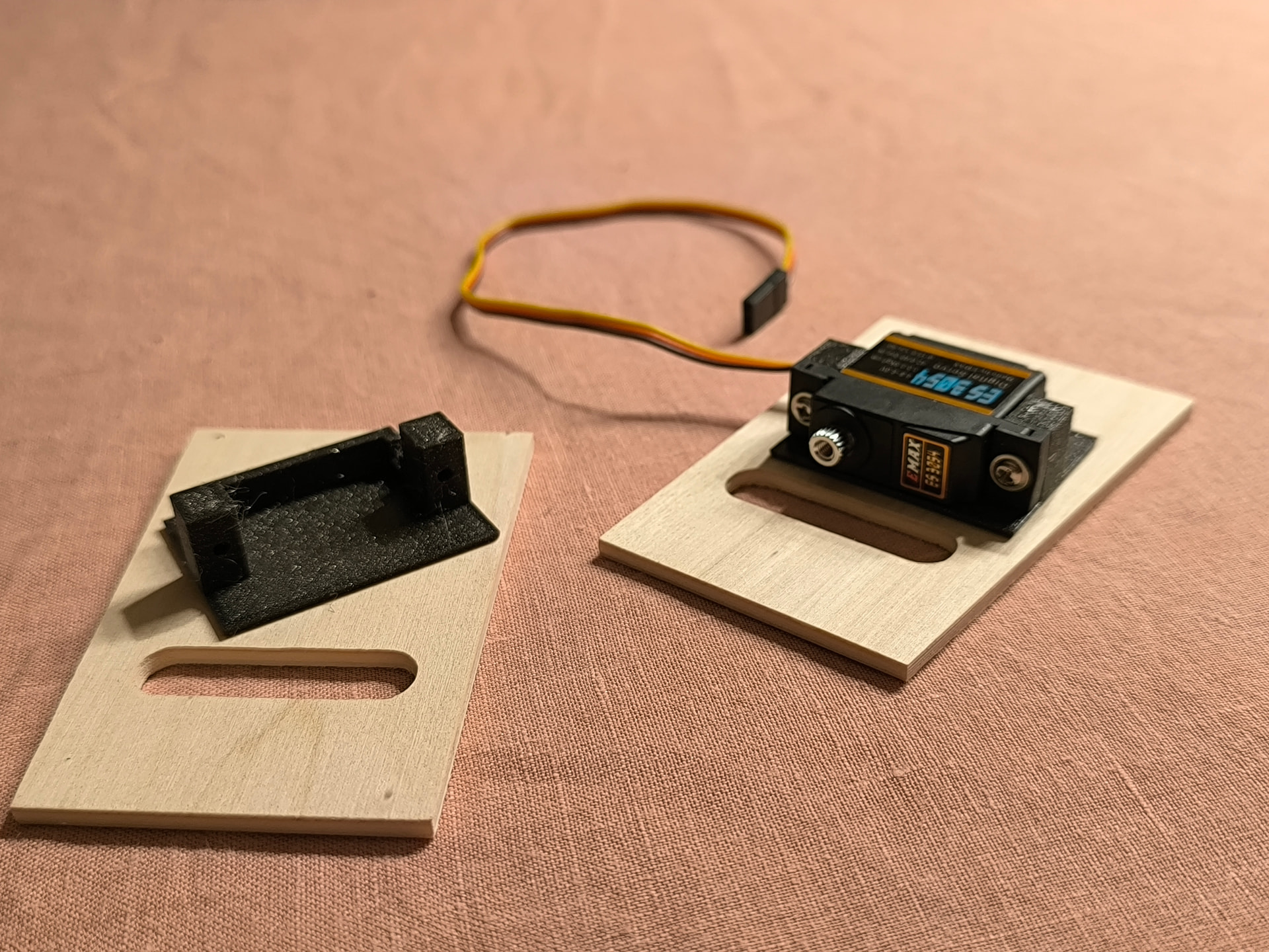 Des servos ES3054 seront en place dans les ailes. Le bati est pensé de façon à pouvoir brider les servos à l’horizontale.