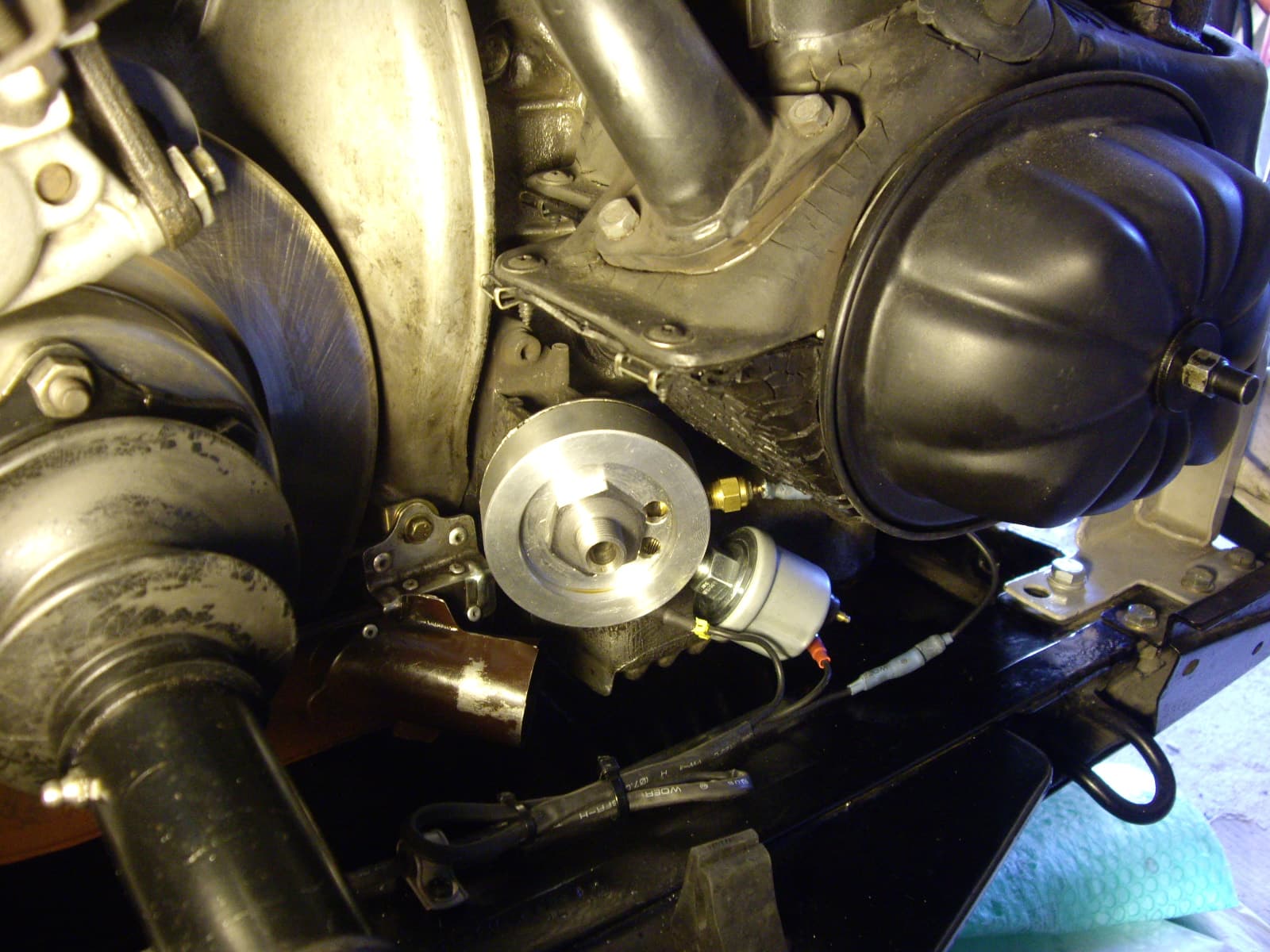 Je dois visser une sonde pression d’huile sur un moteur 2CV.