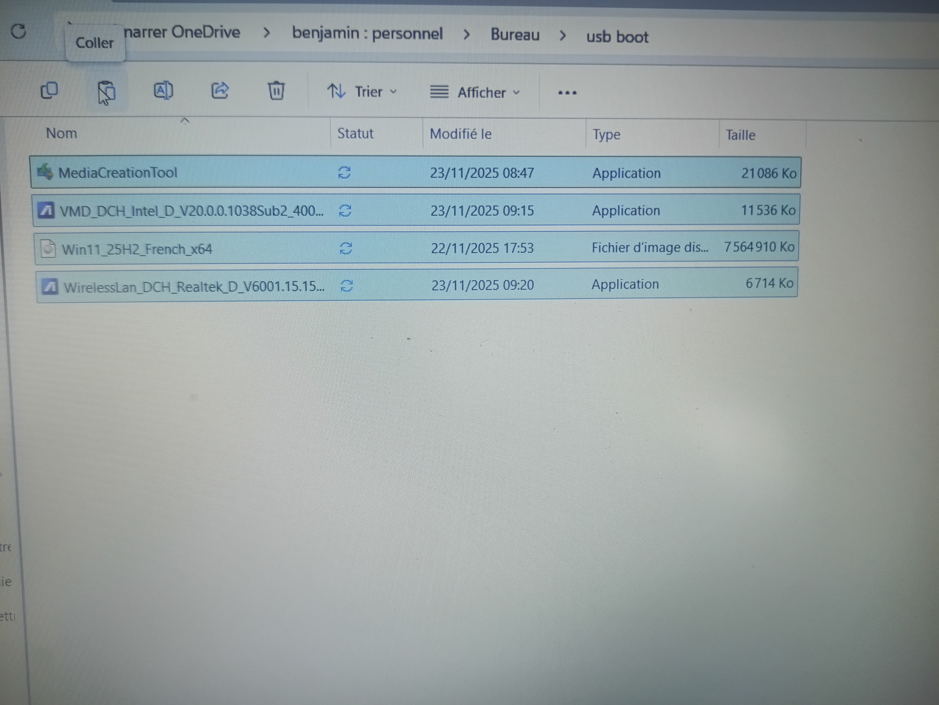 Mais tu n’as rien à télécharger, le gros fichier ISO est dans le même dossier sur ta photo (Win11_25H2_French_x64).