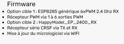 Pour ceux qui nécessitent un peu plus de voies ou un peu de télémétrie j’utilise une carte adaptatrice CRSF de Matek qui permet de rajouter un GPS, la tension ou un vario plusieurs type de cartes de disponible, Et du coup sur cette carte tu viens souder un récepteur « séries » (C’est ce qu’on utilise pour les drones)