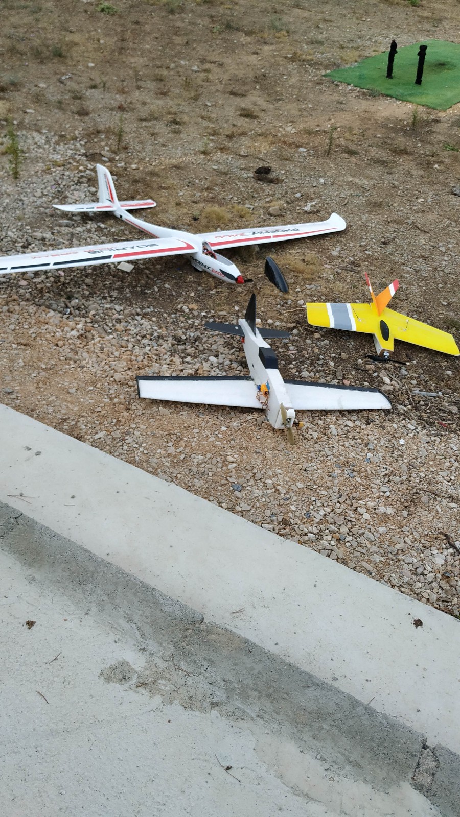 Moi j’ai terminé le réglage des débattements de mon thermique orange à damier blanc et noir et j’ai pris la tangente également car le vent soufflait suffisamment fort pour que je ne prenne pas le risque de décoller et de faire jubiler Patoche.