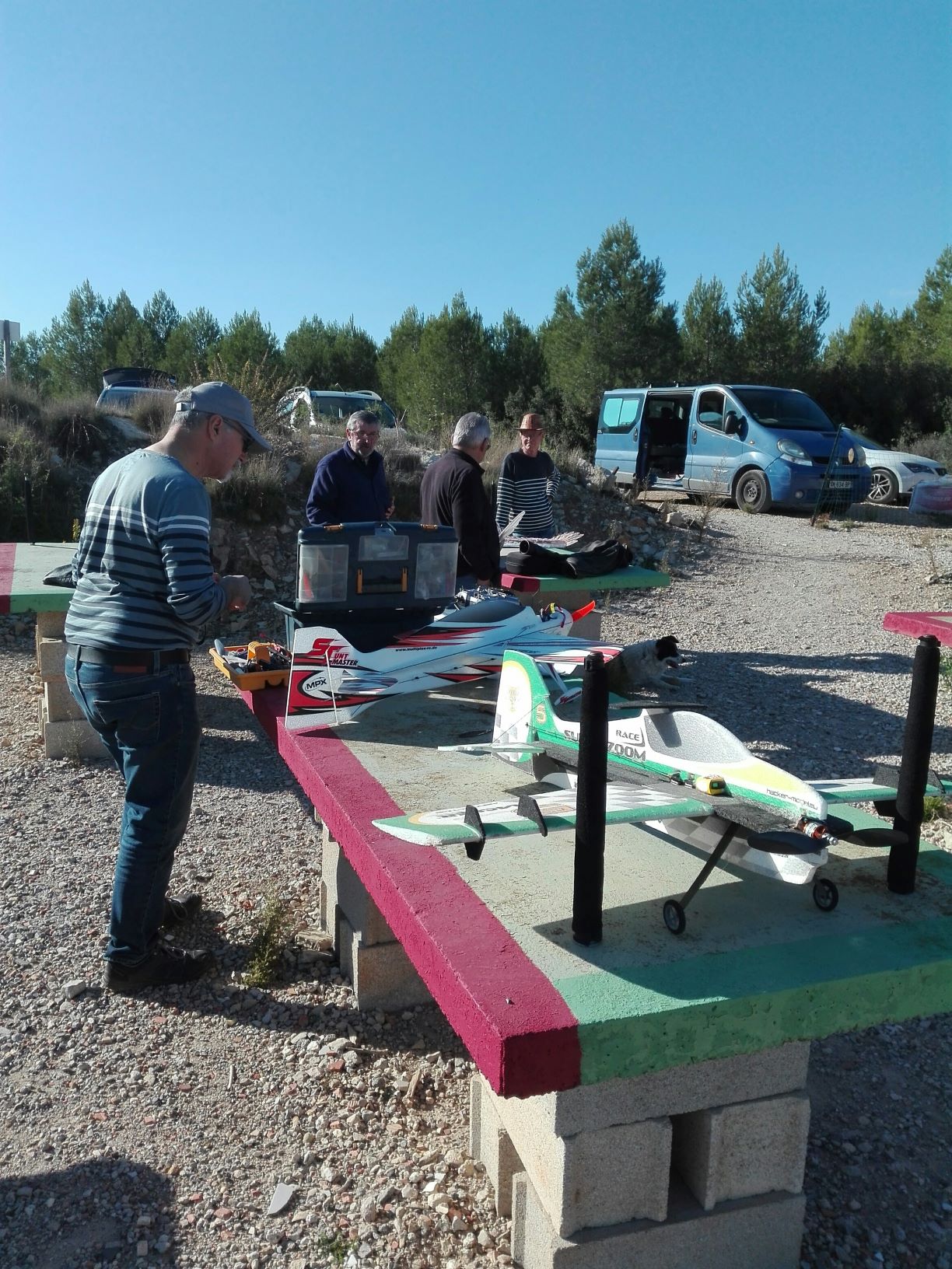 Sur la photo vous verrez qu’il y avait François, un ami à lui il me semble (ou un simple visiteur), Casto II, Gilbert (un autre visiteur), et le fourgon de Manu.