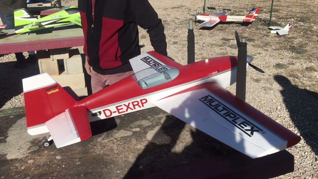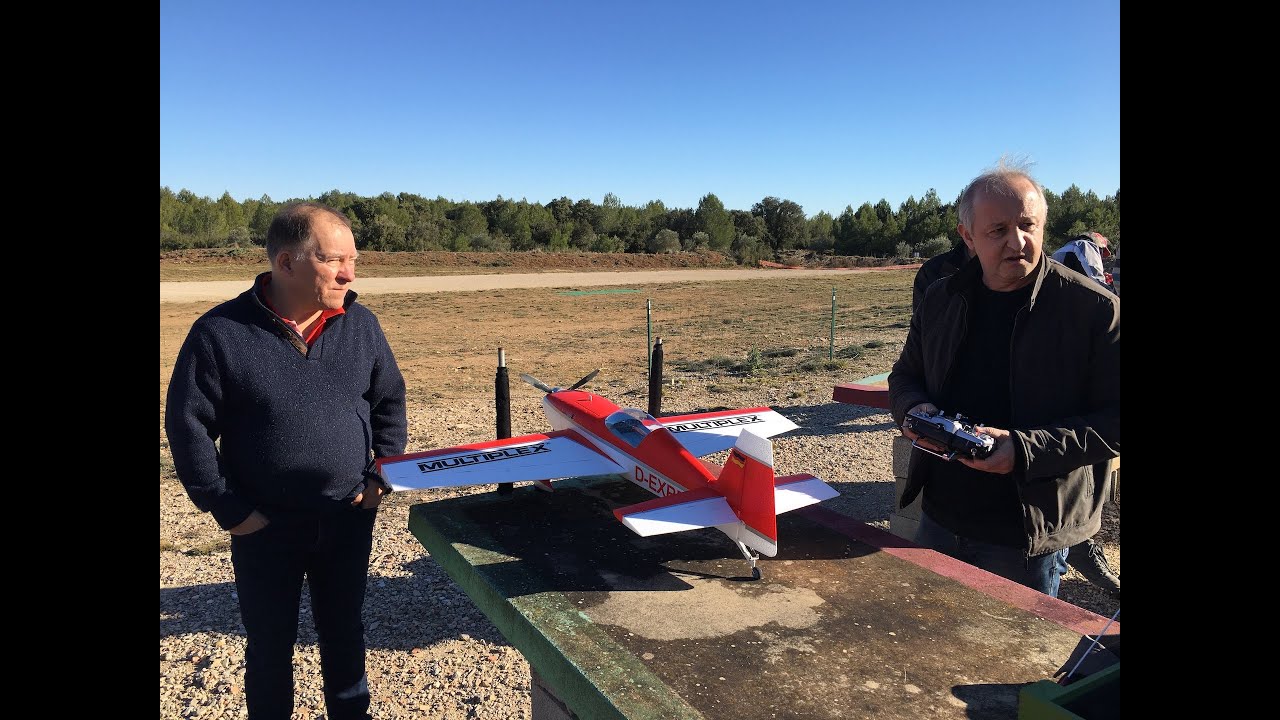 Son bel Extra 300 a pris l’air. Roby fait le premier vol et se retrouve surpris. Ca tire à droite très fortement au point de l’inquiéter. Et pour inquiéter Roby, franchement, il en faut pas mal……. du coup on est tous le nez dans le doute… Mais un réglage vite fait de trims en séance récupère le truc.