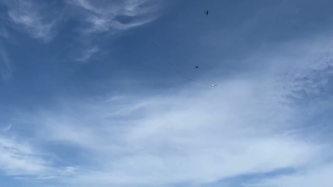 Le Twinstar de Manu tracte une banderole de 30m, et 4 avions « Marek » se lancent dans la poursuite.
