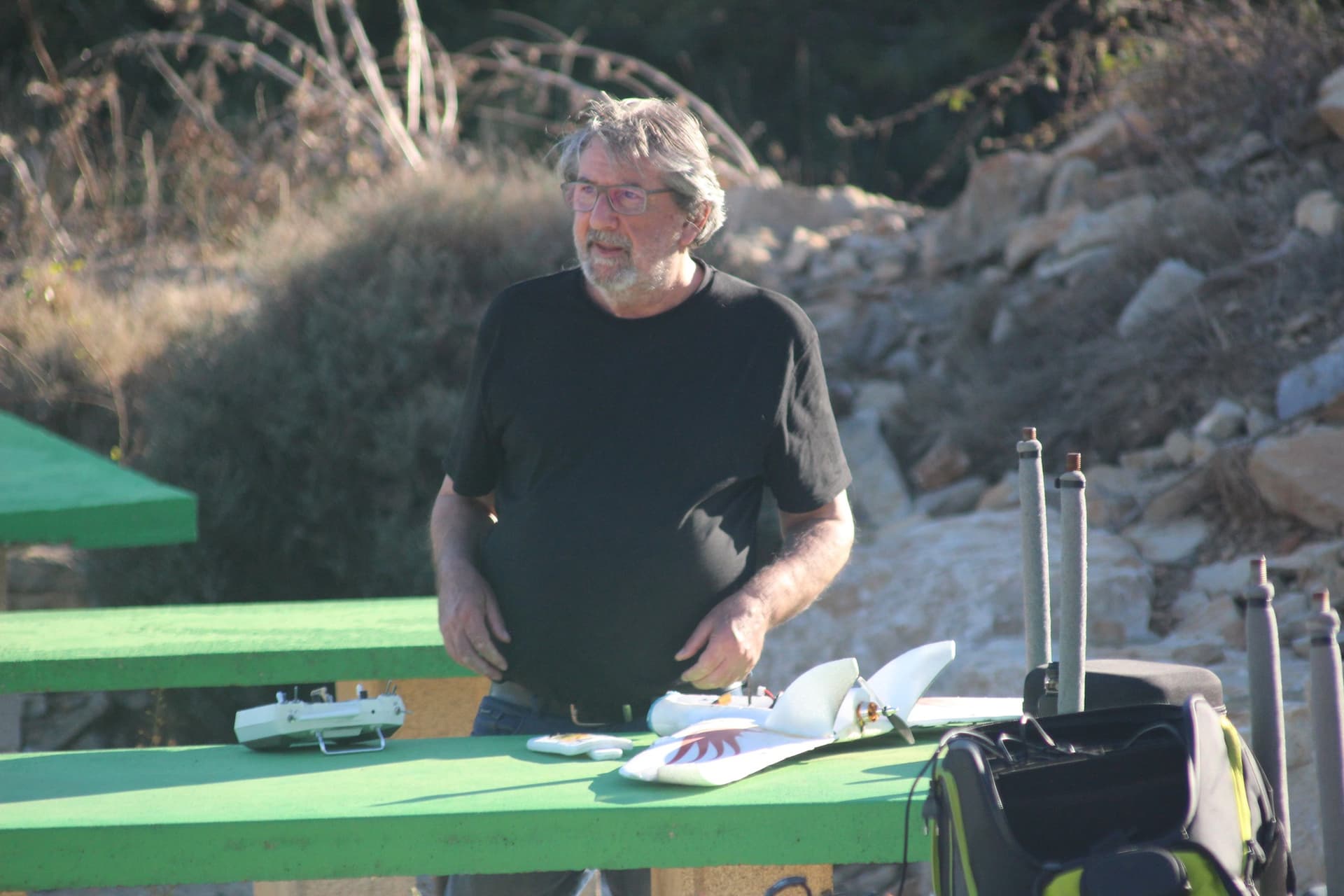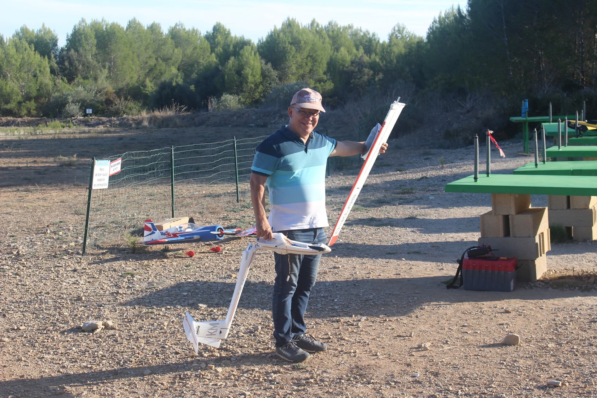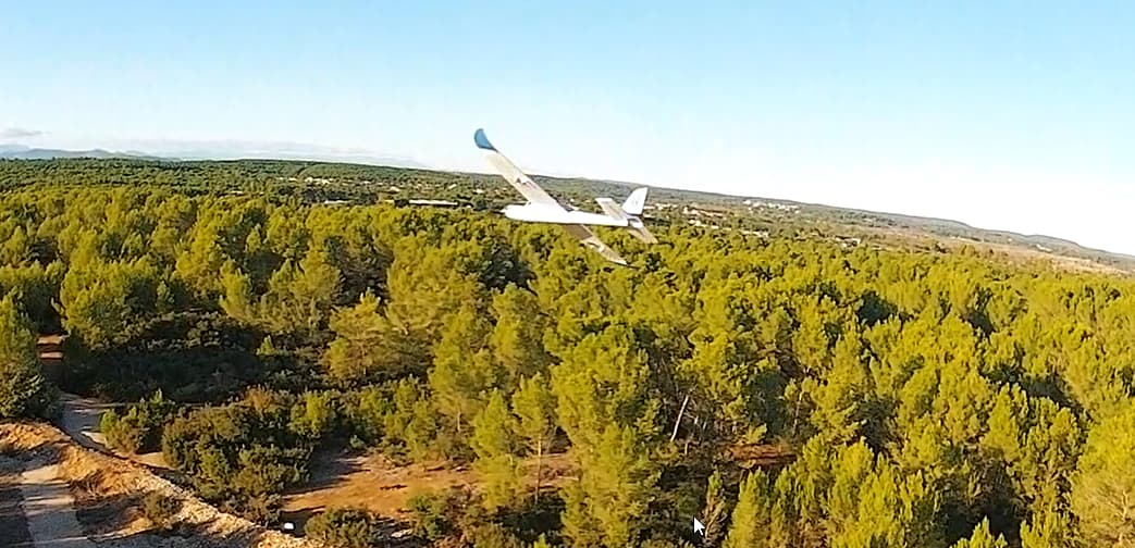 Premier avion, on faisait les essais sur l’asw28 de Lionel, premier lancer s’est bien passé quelques réglages en vol réglage du frein moteur sur l’esc deuxième lancer, c’est la catastrophe, je décroche vols dos bim bam bam crac boum. Mais c’est pas trop cassé, il devrait repartir après avoir recollé la dérive et changer le support d’hélice.