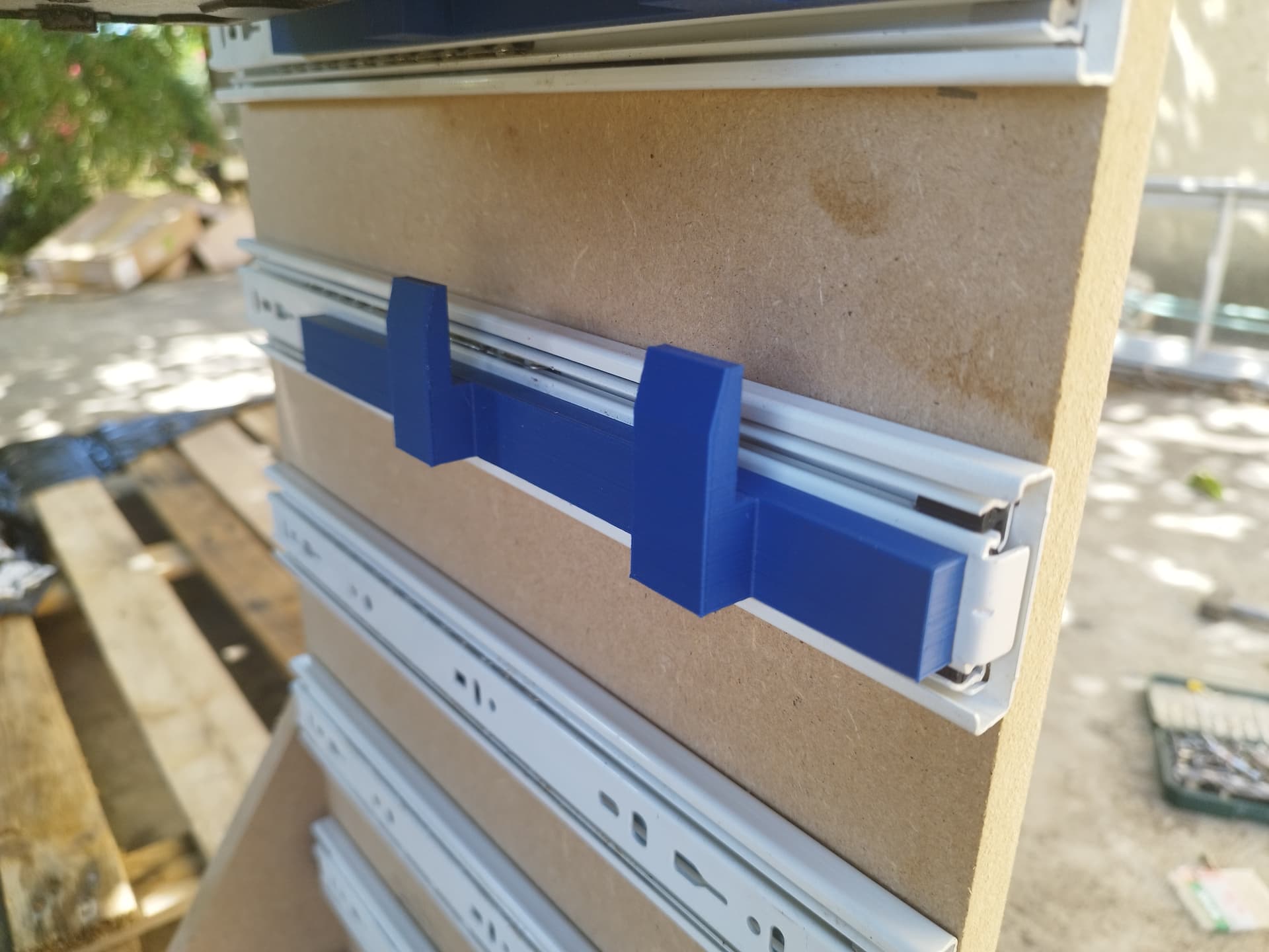 Vous avez bien trouvé un truc sur Etsy, mais relativement cher du coup, je me suis lancé à dessiner moi-même cette pièce en ASA qui adapte entre là le casier Stanley et les glissières.
