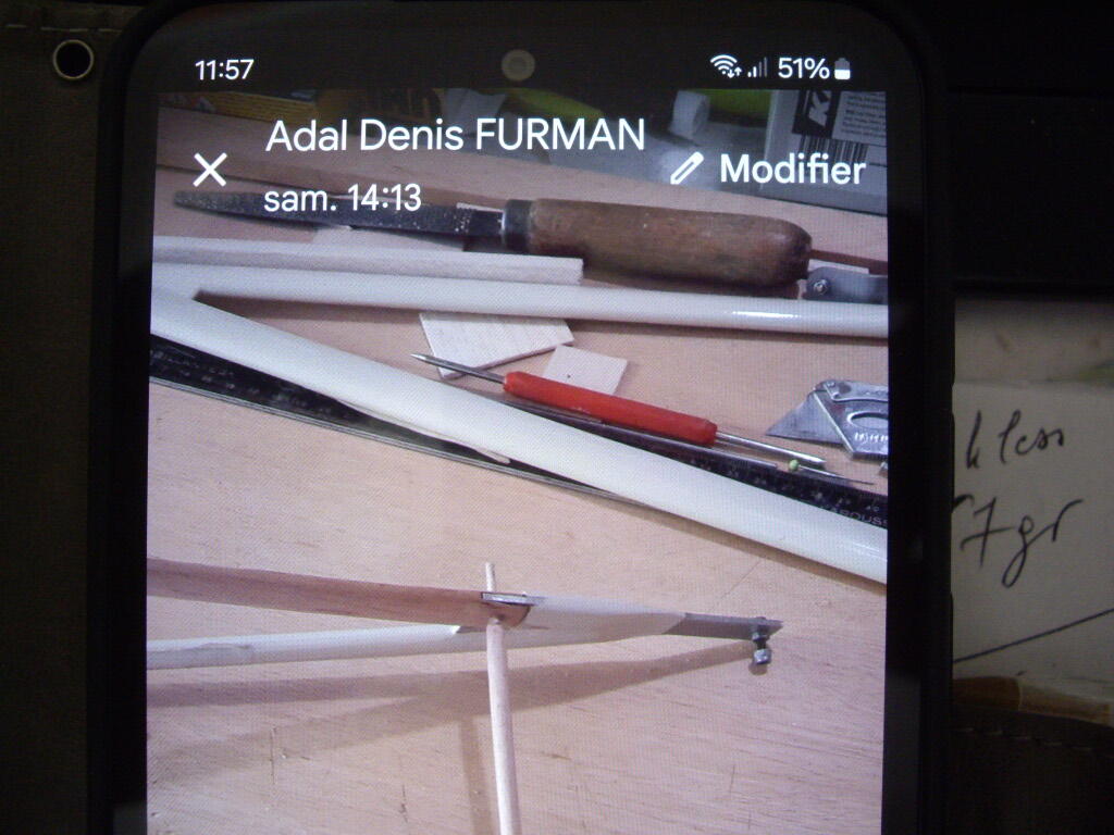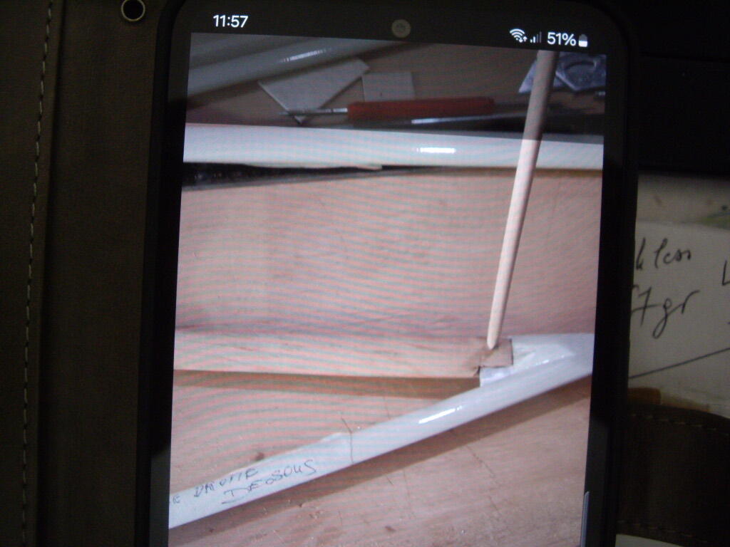 Manque plus qu’a cheviller la pièce sur la partie métallique qui acceuille les 2 bras du haubans, mastiquer et peindre.