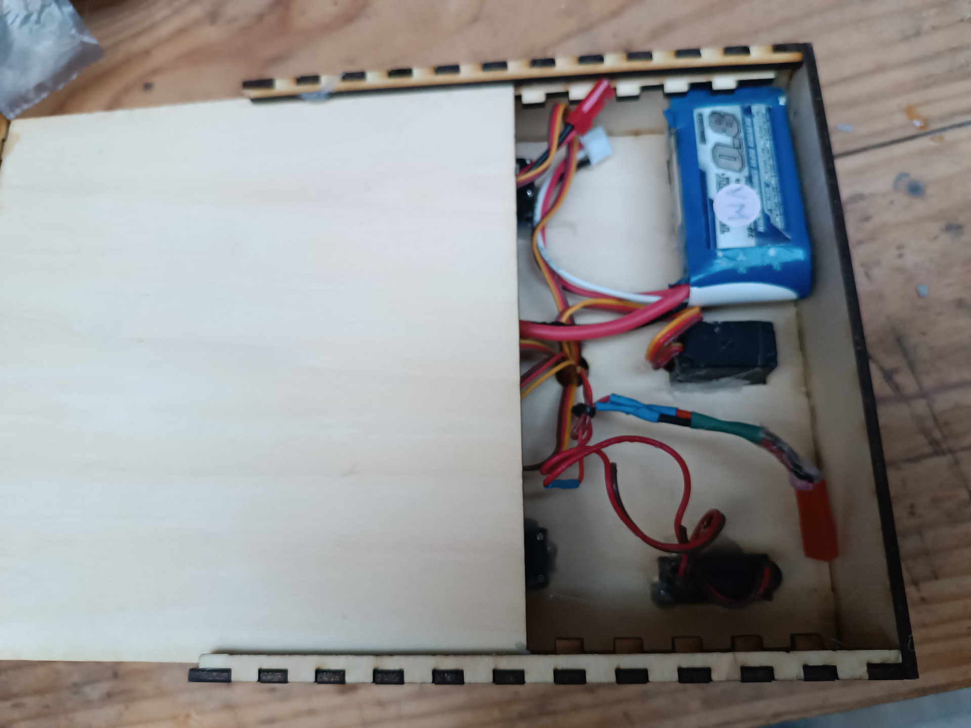 Super idée ! On cherche toujours des servos qui marchent plus ou moins pour tester et on binde avec 3 mains, une pour appuyer sur le titouillou et les deux autres pour tenir la prise. Pas mal vraiment.