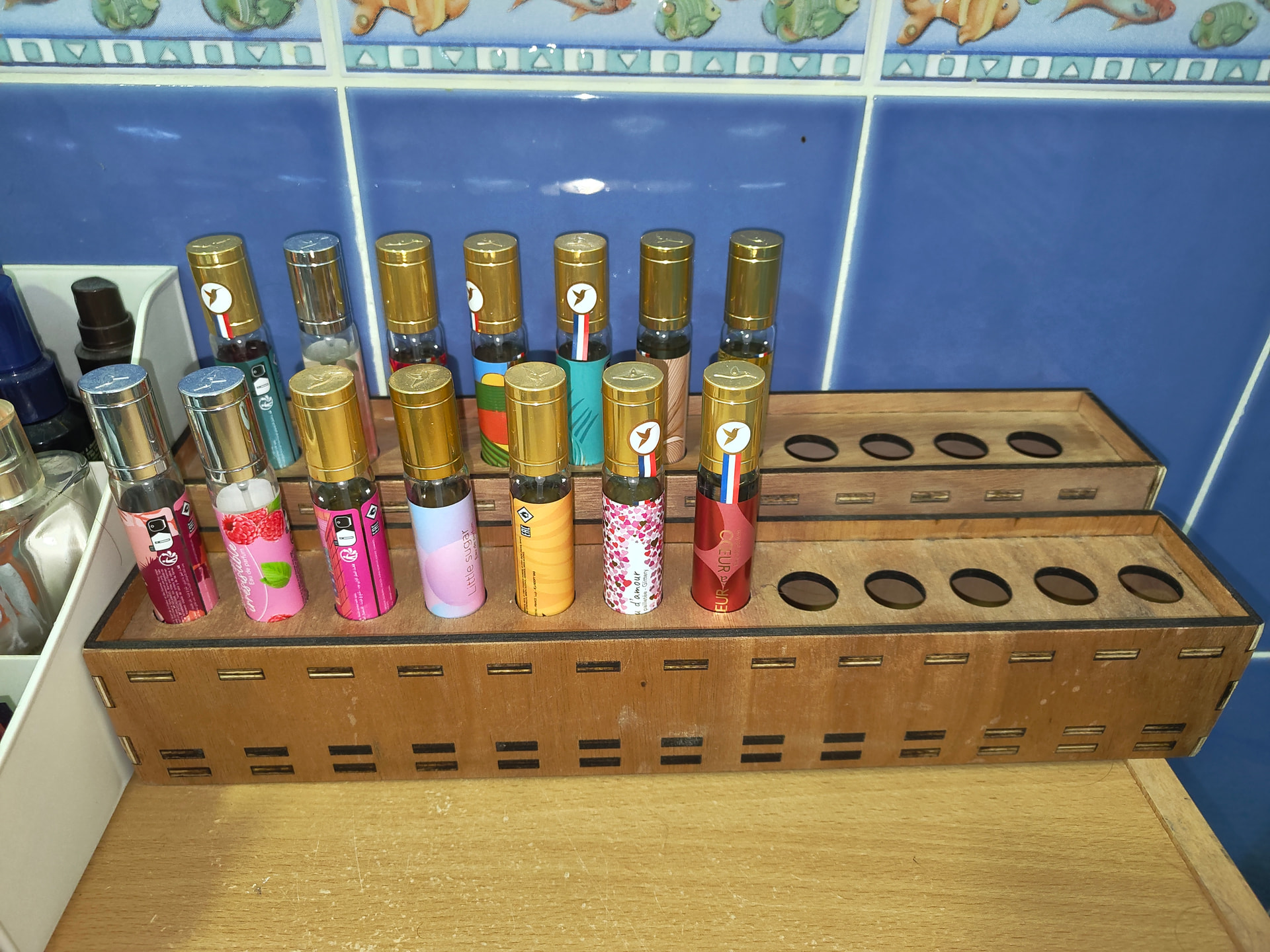 commande de Noël de madame un support pour les parfums de la marque adopte.