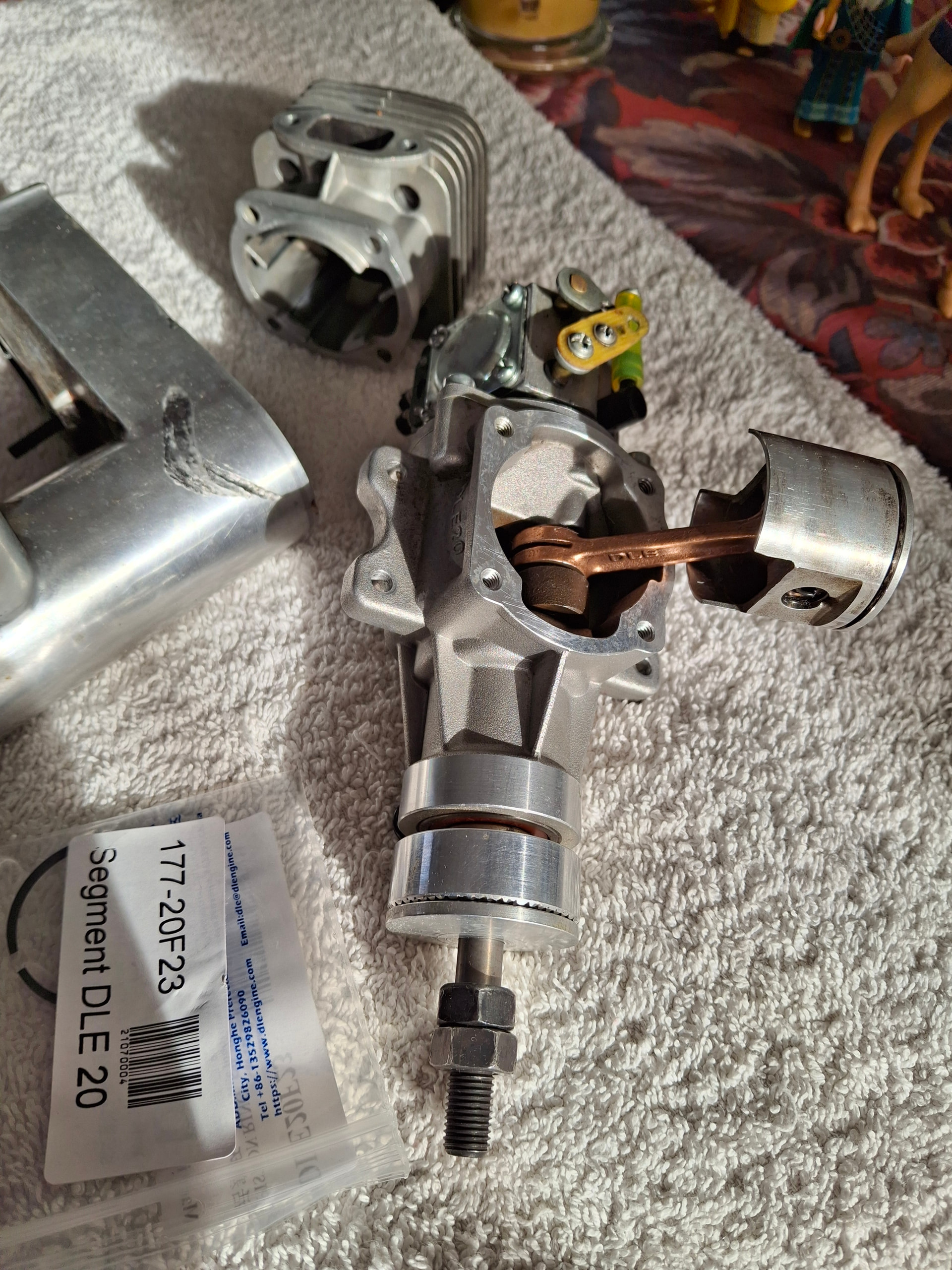 Suite à l’achat du Yak 54 une petite inspection du moteur DLE20 qui n’avait plus tourné depuis quelques années. Après nettoyage général, inspection, changement des membranes carburateur, je vais en profiter pour vérifier le jeu à la coupe au segment qui d’après Olivier ROGEAU dépasse souvent la norme sur les petites cylindrées jusqu’au 35cc.