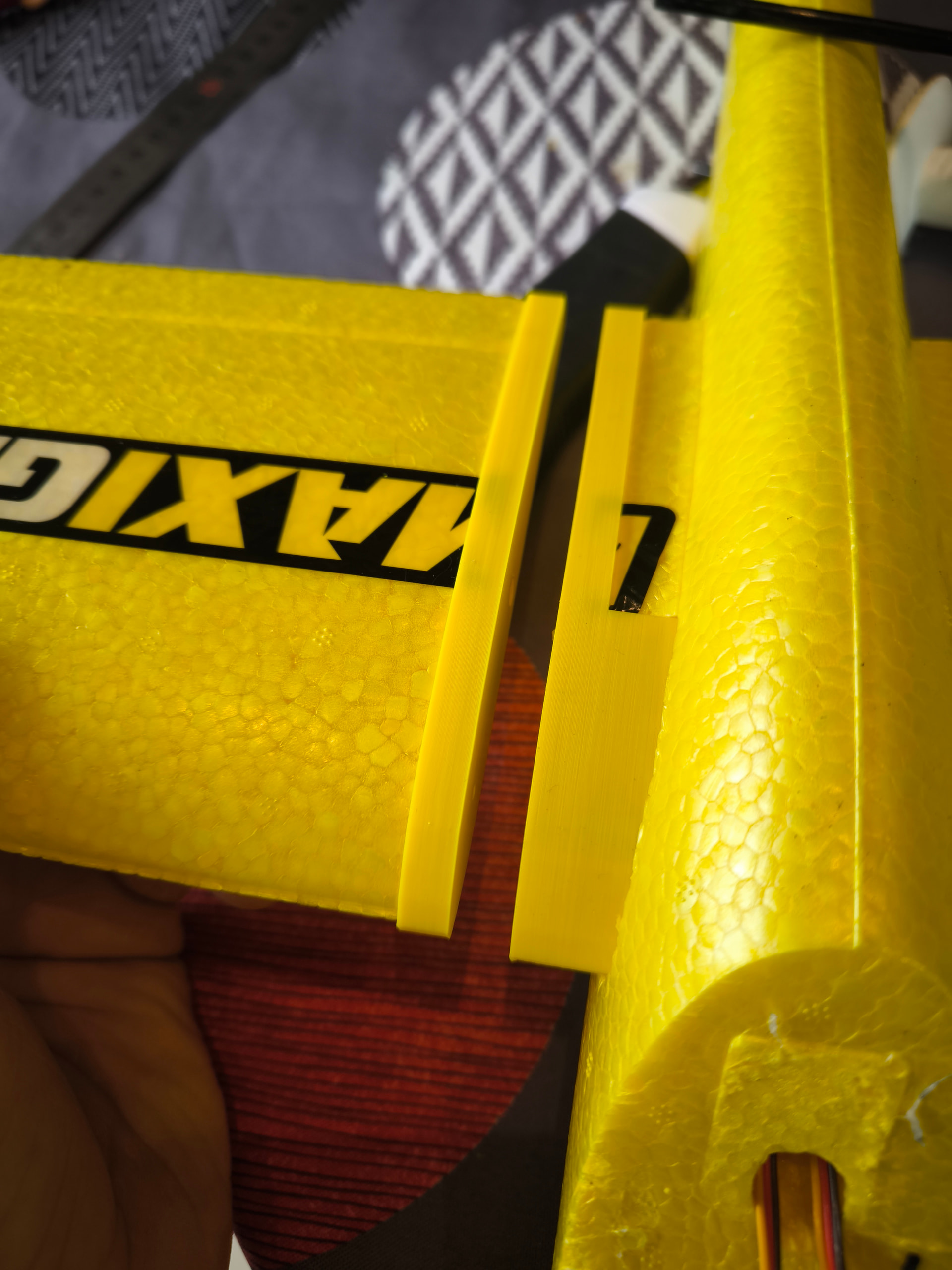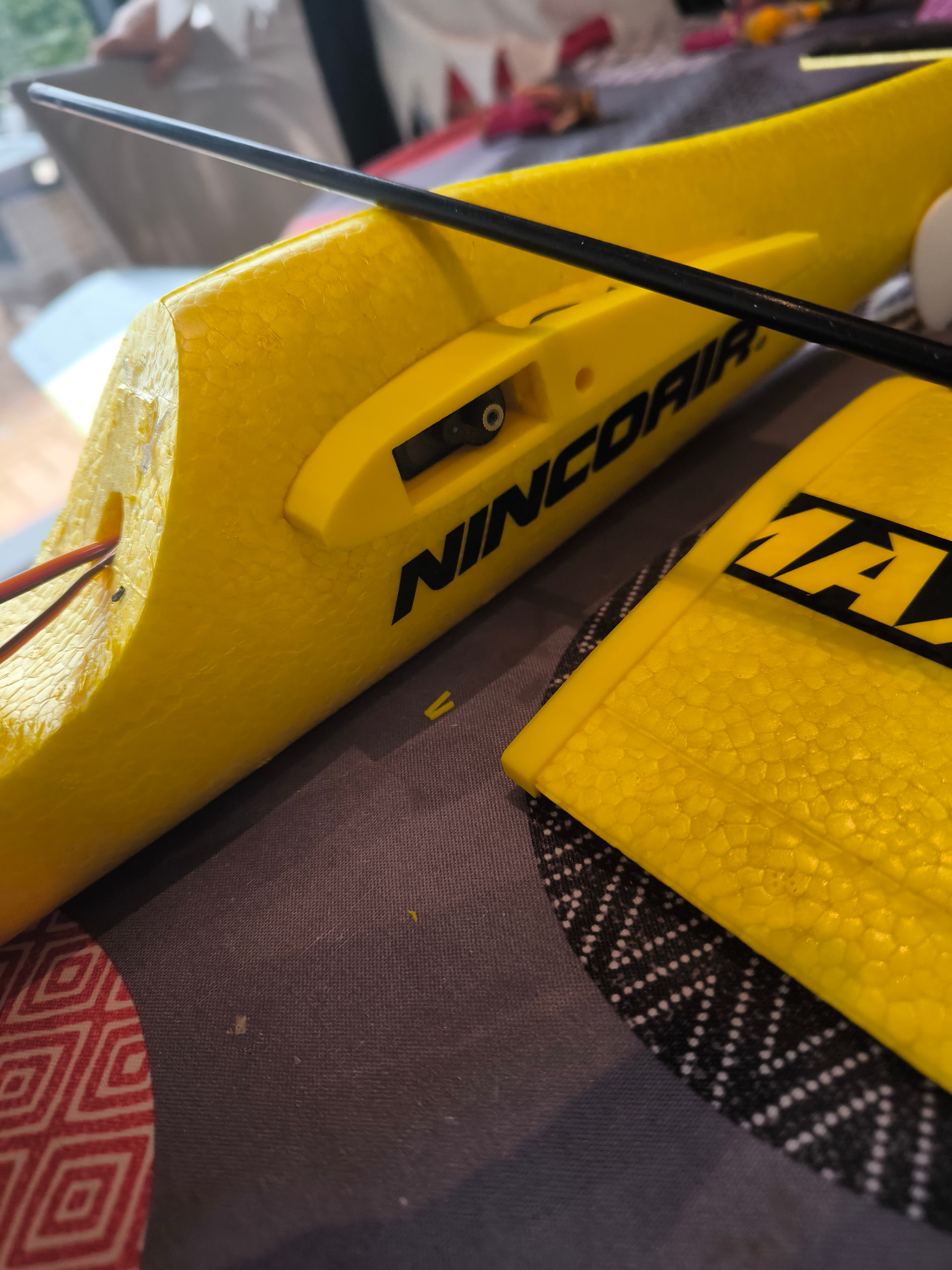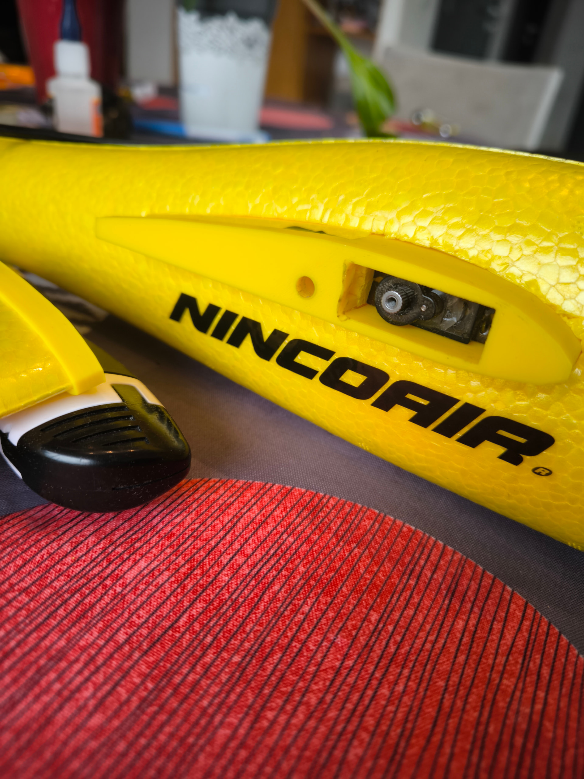 Tu peux aussi monter les servos dans le fuselage et juste une commande pour faire varier l’incidence autour d’une clé ronde. Ca marche super bien et c’est plus léger que les pièces imprimées…