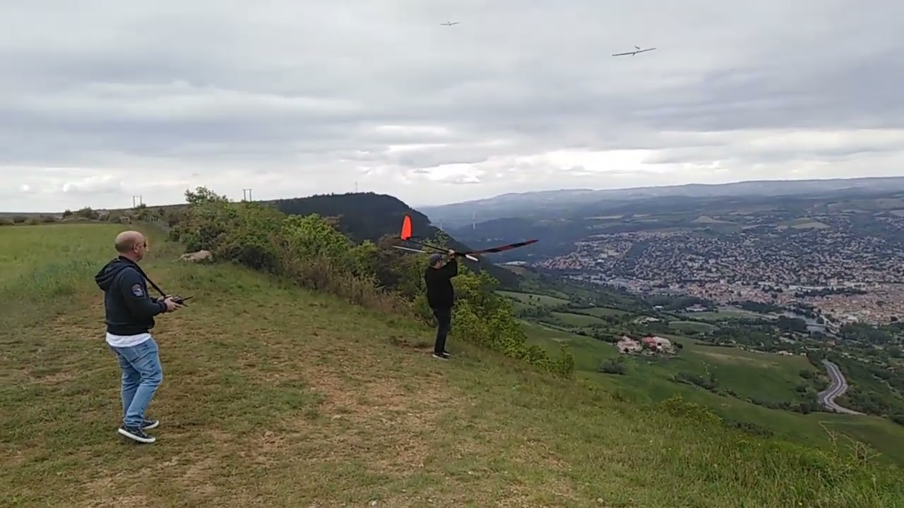 Durant deux jours nous avons pu faire voler l’ensemble de nos planeurs lors de conditions plus généreuses en journée (avec l’ASW28, le Swark, le Sport ou le Lidl) ou plus calme le jeudi soir et vendredi matin (avec le XXLite et le Momentum, deux DLG). Nathan s’est également fait plaisir avec l’aile volante qu’il a terminé de construire jeudi soir sur place: La STRANGE de Jivaro à laquelle il a apporté une modification en réalisant un profil bi-convexe. La mienne qui n’était pas terminée est restée dans le fourgon.