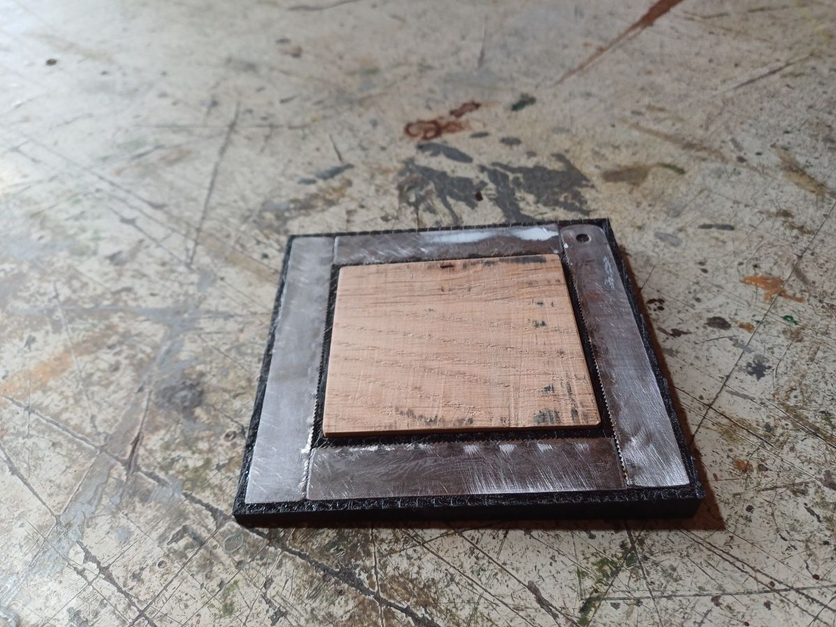 Lors de mes mesures (avion sur le banc) je me suis rendu compte que le pare feu présentait un angle cabreur d’un bon degré et demi; cet angle à compenser plus l’angle piqueur ça fait beaucoup de rondelles, j’ai imprimé une pièce aux angles voulus et garnie de morceaux de lames de scie qui m’a servi à usiner une pièce en bois dur que j’ai ensuit collé en position sur le pare feu.