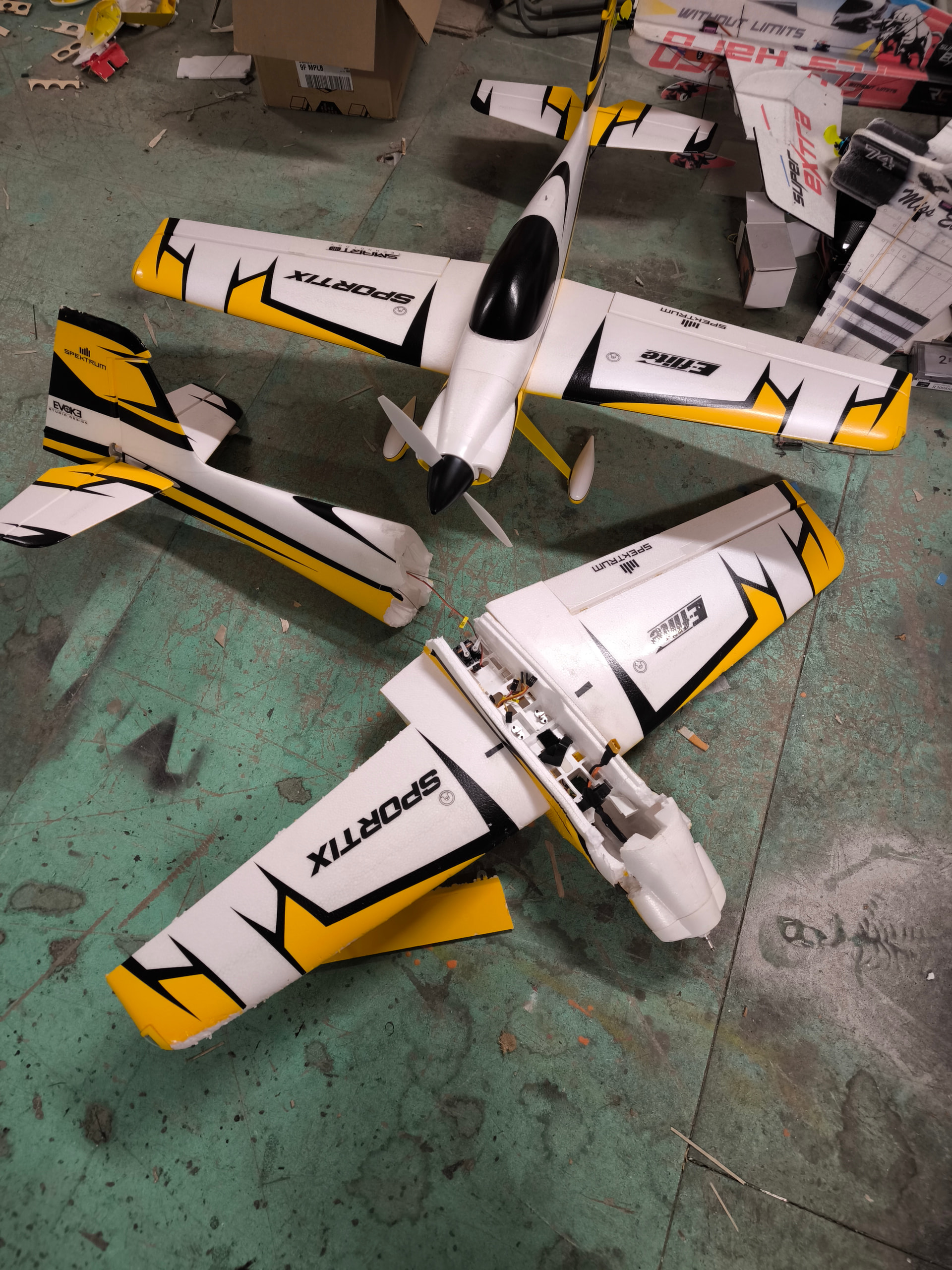 Décollage, premier virage entamé, ma radio m’annonce la perte de télémétrie. J’accélère donc pour retrouver le bout de piste et atterrir mais voilà que la radio m’annonce à nouveau la perte de télémétrie. S’en suit une perte des commandes et un beaux crash plein gaz à tout juste un mètre de Henry et Christophe.