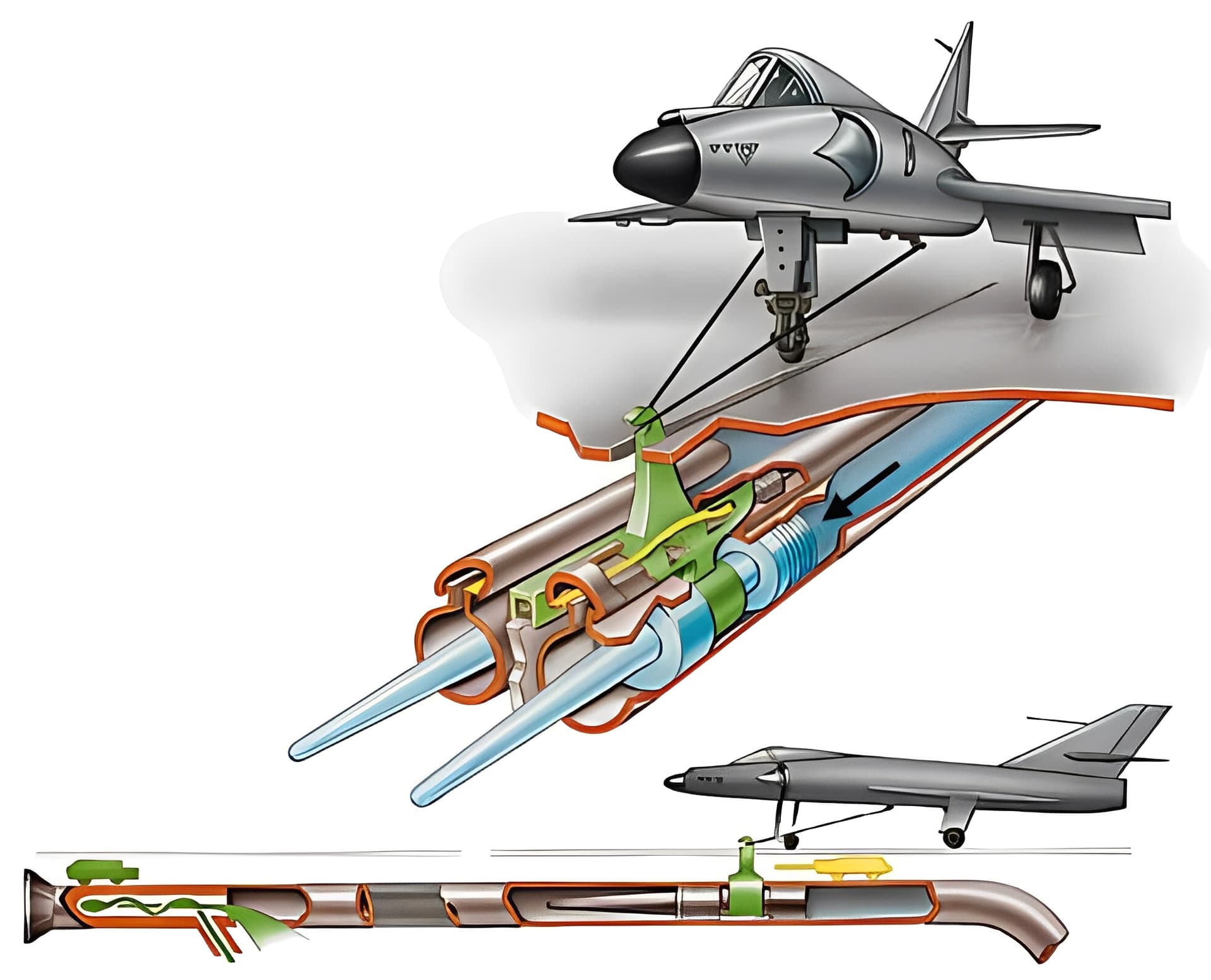 1 une piste roulante qui va permettre à la turbine (aux turbines) de donner rapidement la vitesse pour le décollage,