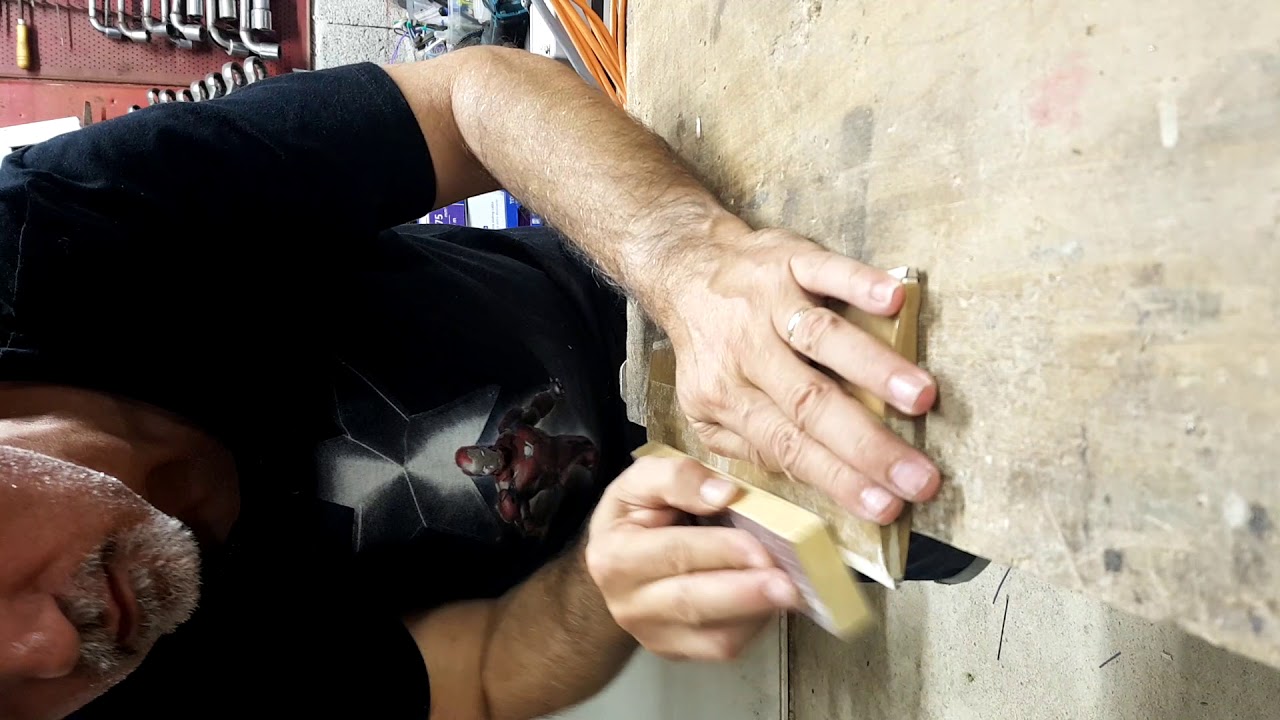 Ensuite je ponce dans le sens de la longueur, d’abord au gros grain puis au grain plus fin. Désolé la vidéo est un peu rapide.